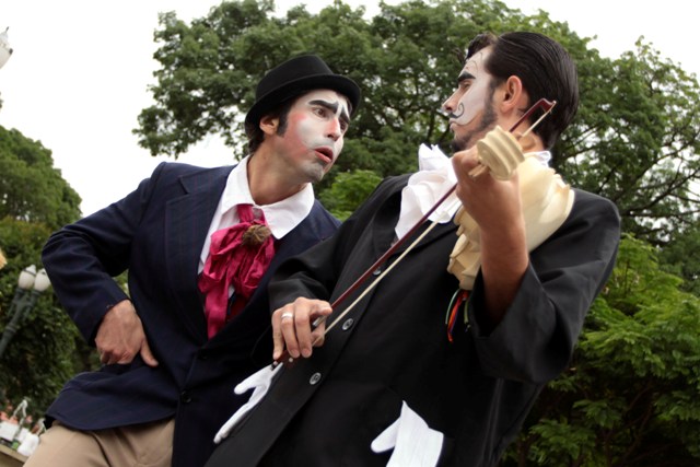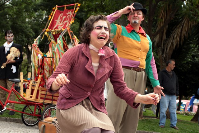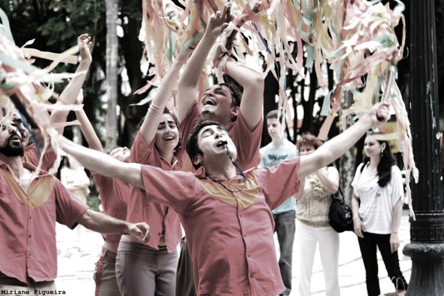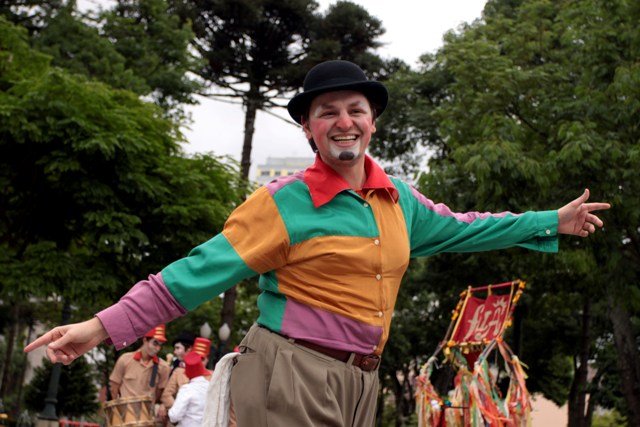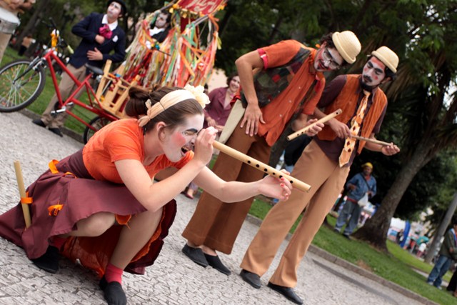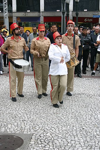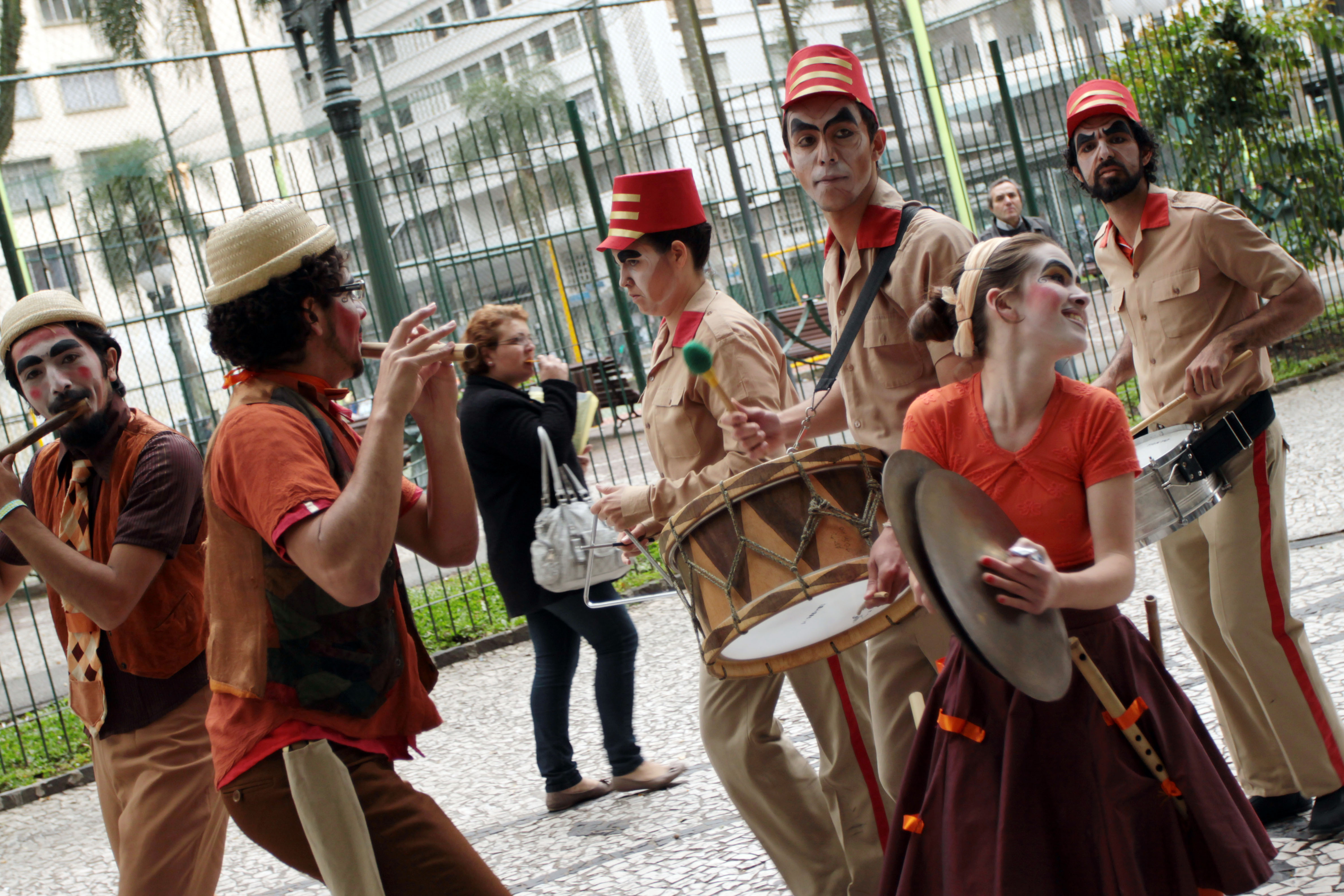 O cortejo musical brincante começando na praça Gen. Ozorio