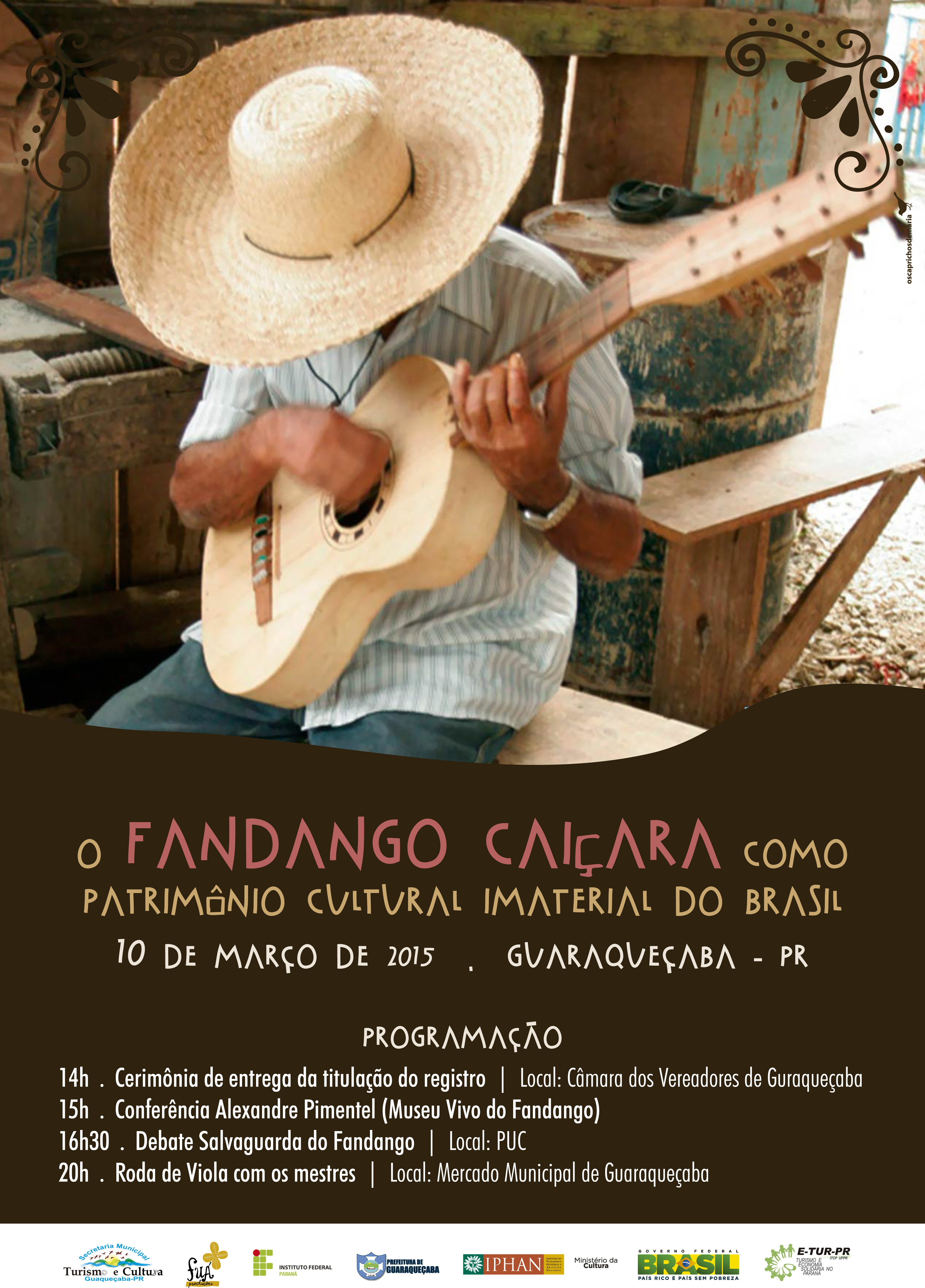 A cerimônia oficial para entrega do título será realizada nesta terça-feira, 10 de março de 2015, em Guaraqueçaba (litoral do Paraná), e contará com a presença de membros do IPHAN, pesquisadores, grupos e mestres do Fandango.