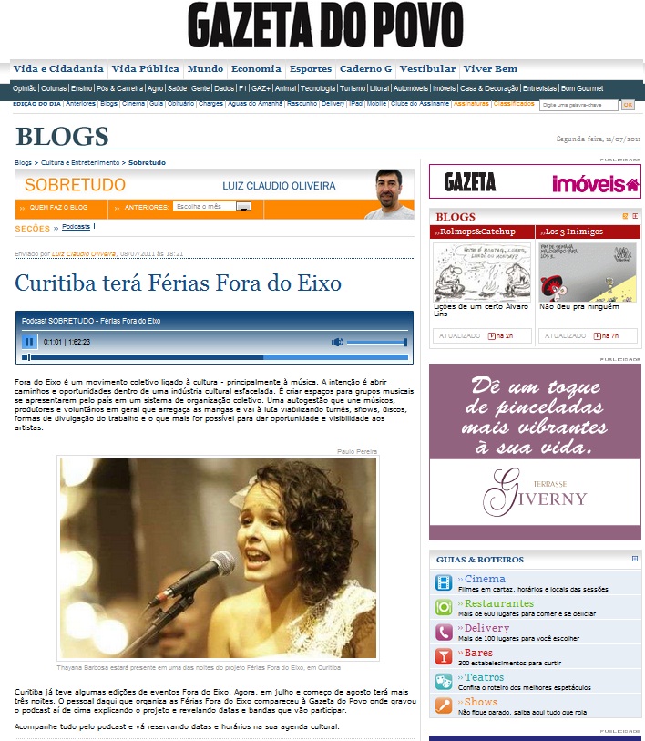 Matéria na “Gazeta do Povo” sobre Férias Fora do Eixo